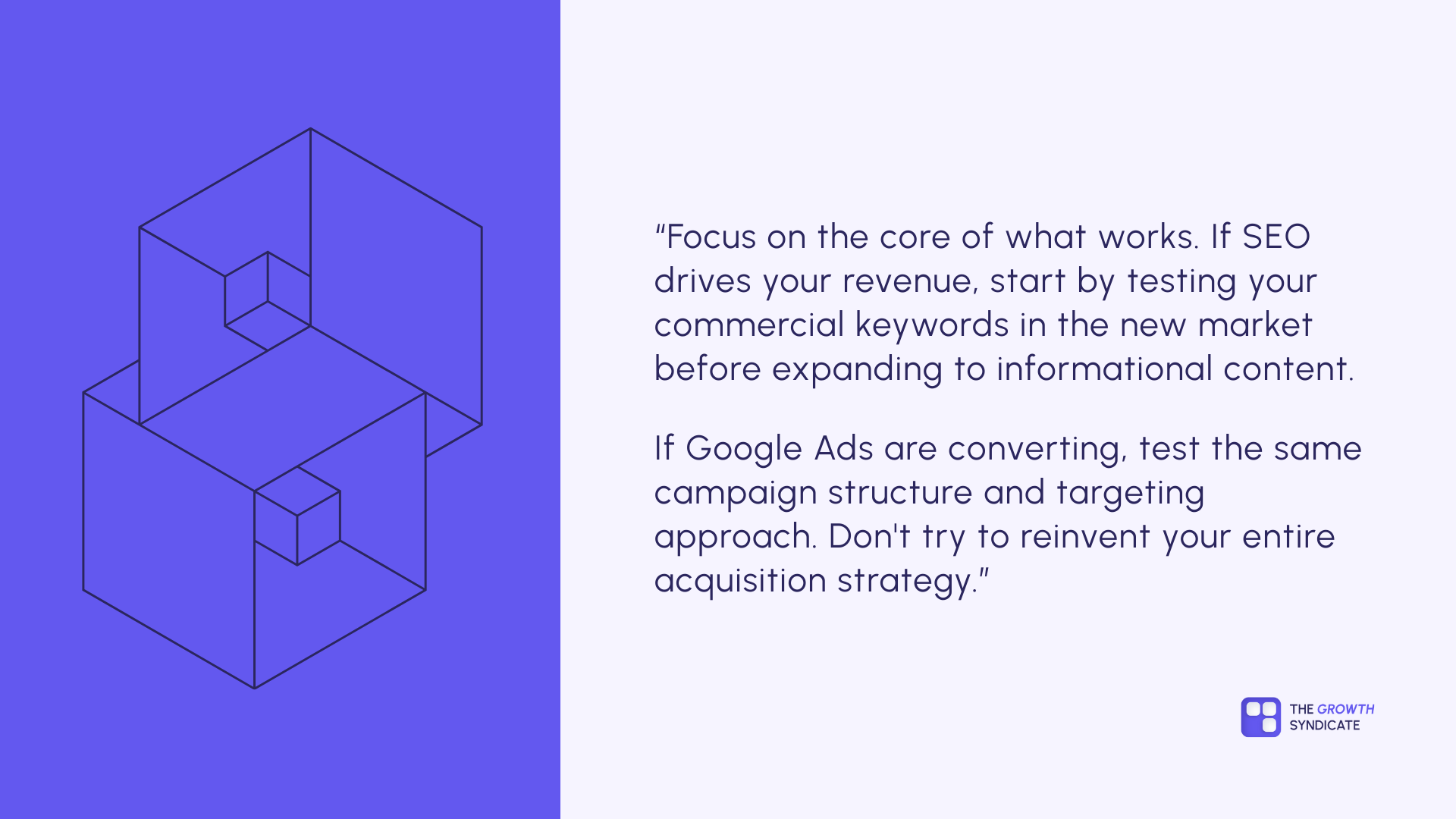 If it works, double down. If it doesn’t translate, then you adapt. But don’t rebuild everything from scratch. Expansion is complex enough as it is.