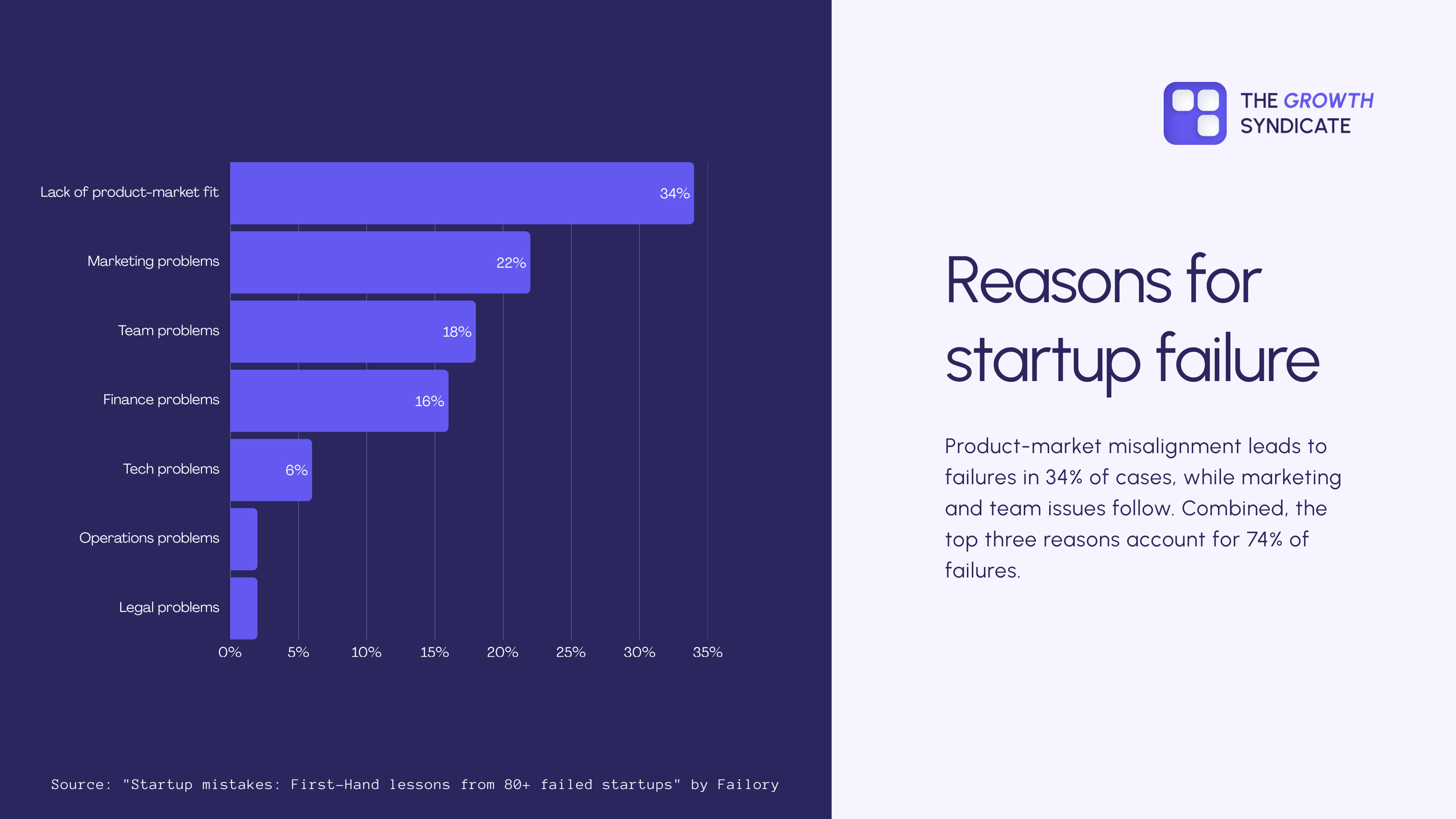 About 34% of startup failures are due to a lack of product-market fit.