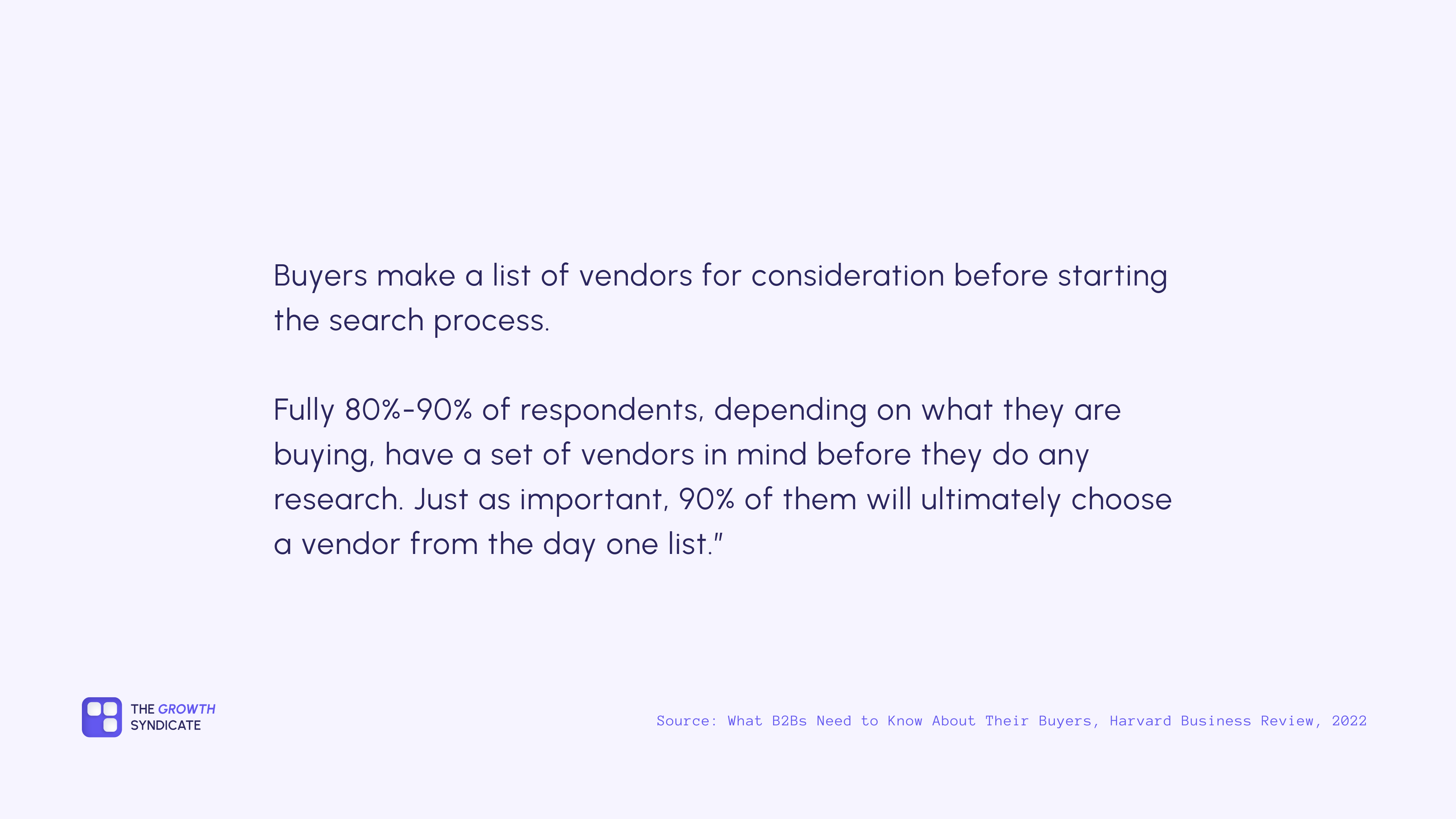 Focus on brand awareness metrics, conversation quality with prospects, partnership pipeline development, content performance. Here’s the key insight: 80-90% of B2B buyers already have vendor shortlists before starting research. Your early indicators should focus on getting onto those shortlists.
